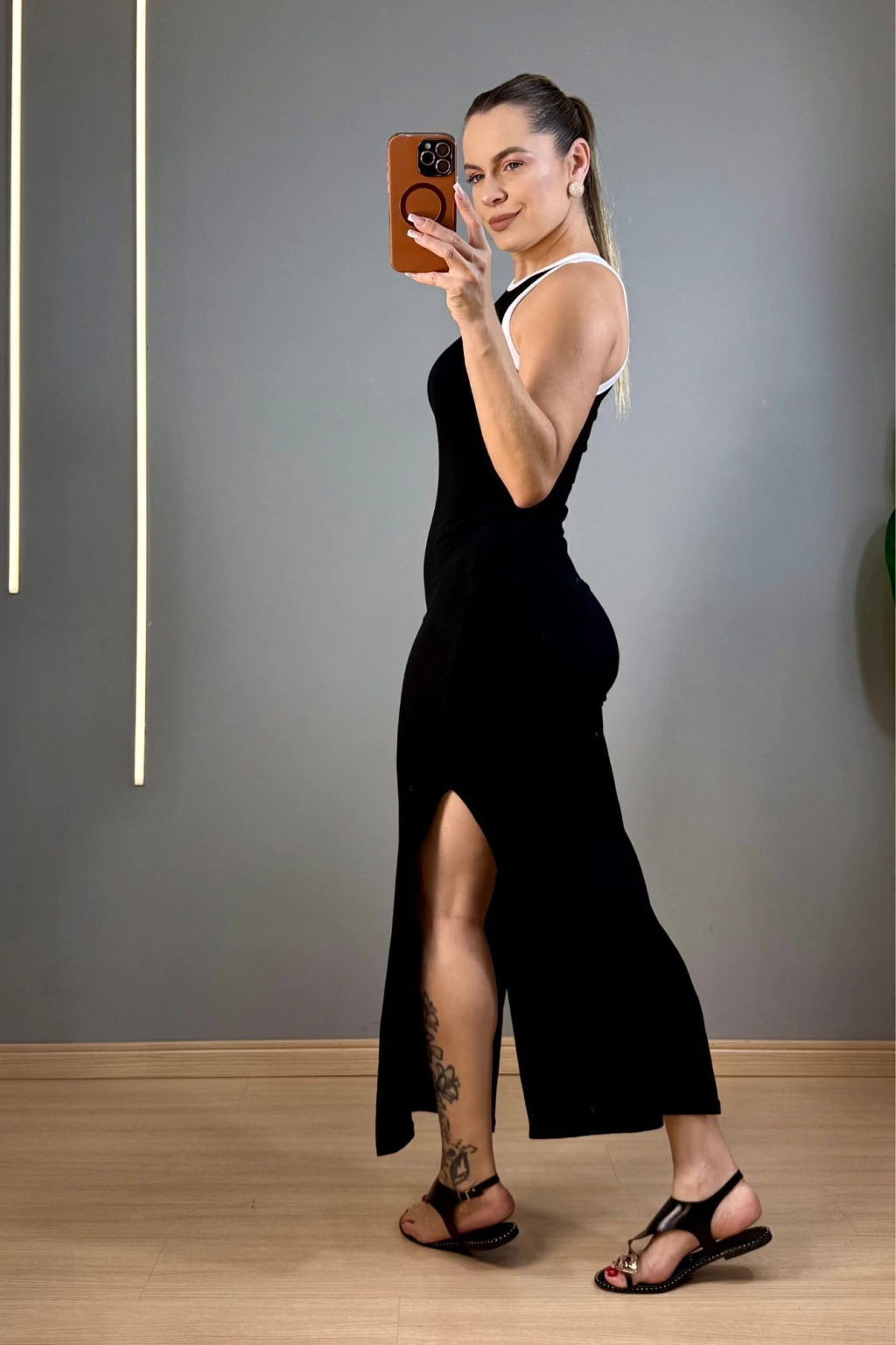 Vestido Duo Canelado | Preto Descubra o equilíbrio perfeito entre conforto e elegância com nosso vestido modelo regata, confeccionado em tecido com 95% viscose e 5% elastano. Seu caimento regular proporciona um ajuste confortável, valorizando diferentes tipos de corpo.